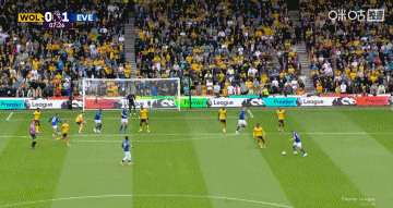 比赛第7分钟,米科连科边路传中,格拉利什头球摆渡,门前贝托头球接力破门,场上比分狼队0-1埃弗顿。