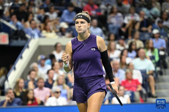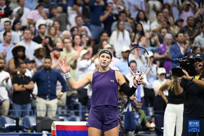 8月25日,穆霍娃在比赛后庆祝胜利。